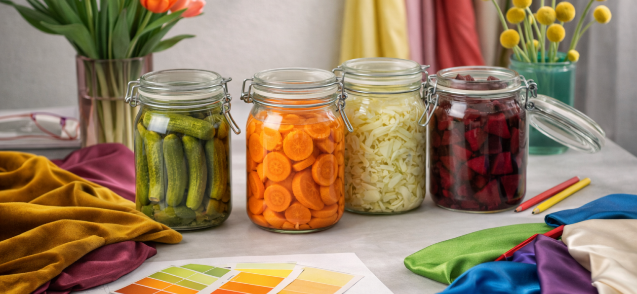 Renk, sadece gözümüzü değil ruhumuzu da etkiler. Moda ve dekorasyon dünyasında ilhamın bazen hiç beklenmedik yerlerden geldiğini biliyoruz. Peki ya bir kavanoz turşudan? Evet, yanlış duymadınız: Turşular sadece damaklara değil, gözlere de hitap ediyor. Yeşilden mora, sarıdan turuncuya uzanan zengin renk paletleriyle turşu kavanozları, tasarımcıların radarına çoktan girdi bile.